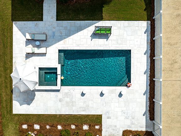 The spacious detached 2-car garage offers epoxy flooring, 12-foot ceilings, and a floored attic for abundant storage. With utilities already run to the garage, the possibilities are endless, create an outdoor kitchen, fireplace, or cabana, or even build up to add a carriage house for guest accommodations. Cable is run to the side of the garage to mount a TV and watch the game from your private pool.