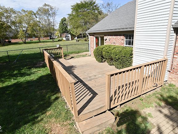 Brick one level home with 3 bedrooms and 2 full bathrooms. Large (0.61 acres) private cul-de-sac location with mature trees and fenced yard. Gives you privacy yet convenient to all the shopping, dining, and entertaining options Brownsburg has to offer. Great room features vaulted ceiling, hardwood floors, and a fireplace. Enjoy your morning coffee cozied up in the breakfast nook with built in bench seating. Primary bedroom suite with walk in closet, private toilet room, dual vanities, tiled shower/tub, and linen closet. Finished two car attached garage with built in shelves for additional storage.