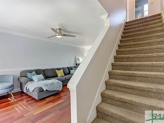 This bungalow is as sweet as its address! Residents are greeted with great curb appeal and a front porch that is perfect for enjoying the Lowcountry air. The interior opens to a very spacious living room outfitted with richly hues floors and a fresh coat of paint. The layout flows seamlessly to the formal dining space and kitchen. One of four bedrooms can be found just off the kitchen, making it the perfect guest bedroom. The master suite can be found upstairs and features a large walk-in closet and access to the upstairs bath. Two more bedrooms upstairs for a total of four or use one room as an office or playroom. The backyard is outfitted with a new deck, privacy fence and offers enough space to install a kid's playground, garden, or firepit. Located only 10 minutes to Hunter Army Air Base, 20 minutes to the famed Savannah River Front, and 20 minutes to Savannah Hilton Head Airport.