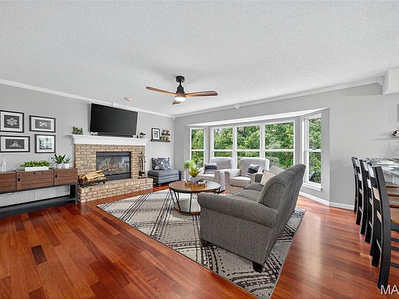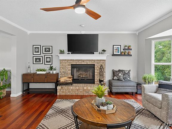 Welcome to this inviting 2-story home tucked away on a quiet cul-de-sac in O’Fallon, ideally located with quick access to highways, shopping, dining, schools, and more. The property offers privacy with a fully fenced backyard that backs to trees. The main floor features an open floor plan, making entertaining a breeze with seamless flow between the kitchen, breakfast room, and living room. The living room is highlighted by a bay window and cozy wood-burning fireplace, while the kitchen offers a center island, granite countertops, and stainless steel appliances. A glass slider from the breakfast room opens to the wood deck, perfect for outdoor dining. A separate dining room, versatile sitting room (ideal as a home office), powder room, and laundry room complete the main level. Upstairs, all 4 bedrooms include ceiling fans. The primary suite impresses with vaulted ceilings, a walk-in closet, and a spa-like bath with dual sinks, separate shower, and step-up tub. The partially finished lower level expands the living space with a rec room, bonus room, and full bath, along with walkout access to a patio and built-in fire pit. This home combines space, comfort, and convenience in a peaceful setting—don’t miss the chance to make it yours!