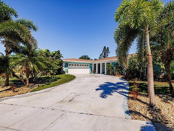NEWLY IMPROVED PRICE!!! A beautifully updated 3-bedroom, 2-bath pool home set on an exceptional 0.4-acre corner lot with grand water views of the deepwater canal leading toward the Peace River and Charlotte Harbor. The fresh interior paint and smooth ceilings (2023), porcelain tile throughout, hurricane impact windows, a storm door, a 2023 roof, 2022 water heater, 2021 gas range, new pool pump, updated electrical and plumbing, and solid wood interior doors support long-term comfort and durability. The living and dining areas flow naturally with sightlines toward the pool and canal, while plantation shutters provide quick, flexible privacy. The kitchen features quartz countertops, gas cooking, solid wood interior cabinet doors, a large solid-wood island, and a sink overlooking the green fenced dog-run area. French doors lead directly from the kitchen to the lanai and pool area, and the dining room includes a storm-rated sliding glass door plus a second storm-rated French door that, when all opened, lift the room with a brighter feel as soft breeze moves through the home. The primary suite has dual closets, an en suite bathroom with a porcelain-tiled walk-in shower and dual sinks. Both bathrooms are styled by large barn doors. Bedrooms two and three adapt easily for guests, office use, or hobbies, with a guest bathroom that lives like a second primary featuring a jetted tub with eight massage jets. Outside, enjoy a screened and heated pool framed by expansive canal views, two fenced side areas, and an insulated garage with a dedicated workshop cooled by its own window AC unit. A flex room with a sunlit window sits just before the garage, ideal for a den, study, or breakfast nook. Additional features include an RV/boat pad with a 50-amp connection, a 16KW generator, and underground utilities. The cul-de-sac setting and absence of overhead wiring contribute to a clean and quiet streetscape. Minutes to Punta Gorda via the Gilchrist Bridge and just 2 miles from Port Charlotte Beach Park with its public boat ramp and waterfront spaces, this location blends recreation with everyday convenience. The home stands in true turnkey condition with ample room for future custom touches, prepared for the next chapter and the memories to come.