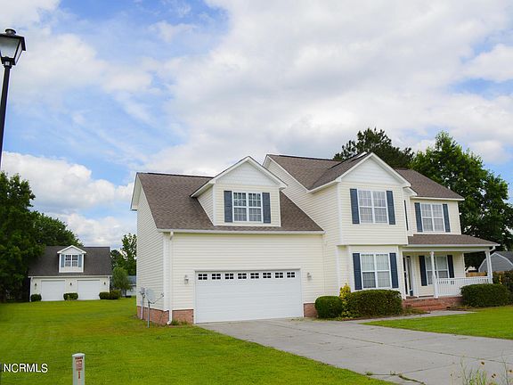 Five minutes out from the Hubert Gate, and barely 20 minutes from the Emerald Isle Beaches, stop the car at 202 Target Ln. Here is a home that fits a variety of needs; whether you need space and storage, a relaxing outdoor atmosphere, or even a workshop with room to expand. As you walk into 202 Target Ln, you are greeted by an enormous foyer which stretches up to a high ceiling which let's in massive amounts of ambient light. To your right is a living room wing, which takes up the whole right side of the downstairs. In the back is a large kitchen complete with eat in area, which opens directly back onto the living room for that desirable open floorplan feel. A formal dining room is in the front on the left hand side of the home which offers privacy for dinner meetings, work at home, or home school uses. Upstairs contains 3 great sized bedrooms with the master occupying its own space separately for privacy. Dual vanities, a garden tub and separate shower, and large closet put an exclamation point on master bedroom. across the hall is an oversized bonus room with 3 closets and another separate 9x9 space with glass doors for another office space, home school classroom, or gaming room. Step outside and decide if you wish to enjoy a screened in porch, a patio with a pergola, or a fire pit in the yard. Having any one of these outdoor settings is great but having all 3 is uncommon. Finally, in the corner of the backyard is a 2 story, 2 car garage. It is wired with electricity but is not heated or cooled. Yet with some planning and effort, another heated square foot space could be created. For now, it is storage and a workshop that is not frequently found!Finally, 202 Target Ln is a home that fits a variety of needs; whether you need space and storage, a relaxing outdoor atmosphere, or even a workshop with room to expand. So let's explore your options today and look to make 202 Target Ln your home.