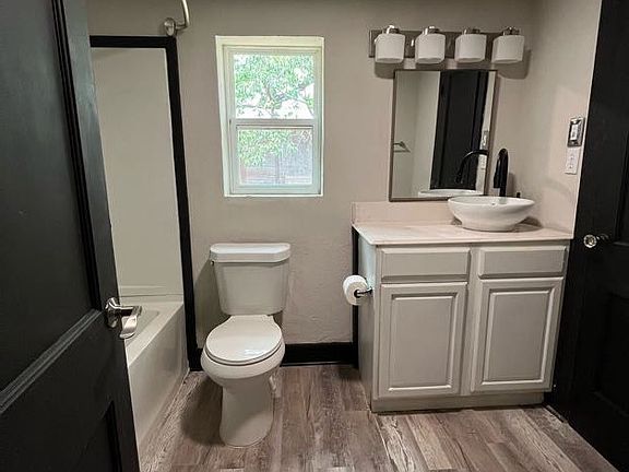This charming rental unit offers a stylish and comfortable living space with updated features throughout. The kitchen boasts modern dark, beautiful countertops, The open-plan design flows easily into the dining and living areas, with easy access to natural light through large windows. The bathroom is contemporary, featuring a modern vessel sink, vanity, and plenty of storage, along with clean, minimalistic finishes. A large window allows natural light to fill the room, creating a relaxing atmosphere.