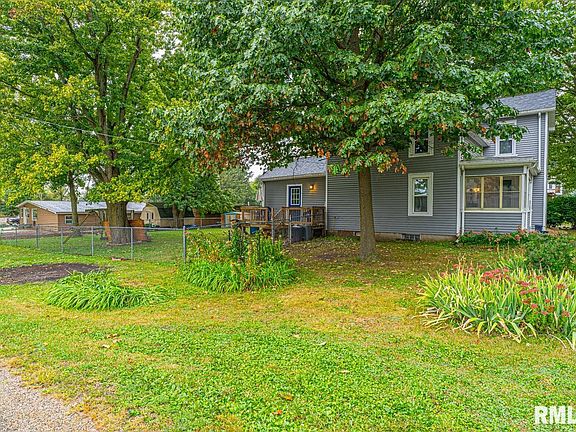 Situated on a 75X126 fenced tree shaded corner lot in Delavan, you will find this nicely updated move-in ready 3 bedroom, 2 full bath vinyl sided two story home! Main floor of home features an enclosed 17X7 porch (not included in total square footage), roomy front facing living room, generously sized formal dining room with laminate flooring, equipped kitchen with an exterior access point, large 16X8 rear laundry room/mudroom, 12X12 den/office, and a full hall bath. Upstairs, you will find a neat split landing -- to the left you will find a front facing bedroom as well as a full hall bath -- to the right and up a few stairs you will find two additional nice sized bedrooms -- one featuring a large adjacent walk-in closet. Property also features a partial basement, front off-street gravel parking area, large semi private rear deck, newer quaint side porch, large fenced backyard with a storage shed, newer water heater (installed in 2023), most vinyl replacement windows, and various additional recent updated features including architectural roof, exterior vinyl siding, soffits/fascia, and gutters (2017/2018). The best in small town Tazewell County living awaits you and yours with this smartly priced residential dwelling!