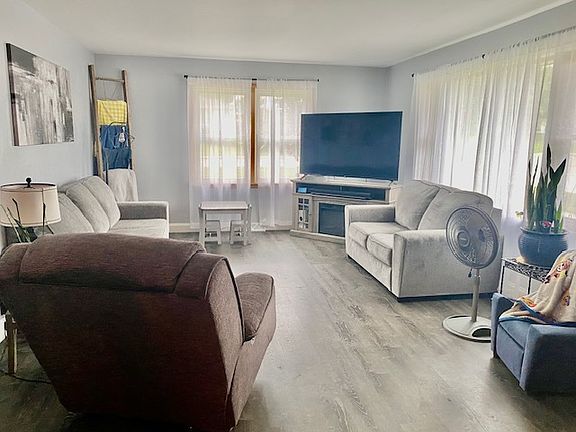 A must see 2 bedroom, 2 1/2 bath home on a large scenic corner lot. Enjoy the open floor plan and sunny eat in kitchen with appliances that are negotiable. The primary bedroom has a 1/2 bath and plenty of closet space. Enjoy your morning coffee on the sunny deck that can be accessed through the primary bedroom sliding glass doors. The home has updated laminate flooring throughout. There is a full useable walk-out basement for further expansion with a full bath. The basement is a walkout to the lovely back yard that is nicely landscaped. There are two 1-car garages and a small storage.