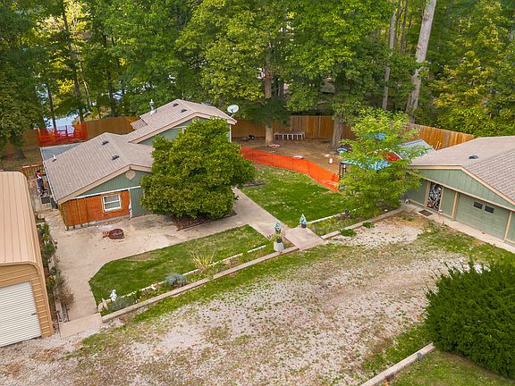 Welcome to your slice of peaceful lake life on Princes Lake Northeast Lake! This adorable bungalow sits on a extra large corner lot with big flowering trees, a fenced backyard that leads right to the water, and a large wrap-around deck perfect for soaking in the views. Inside, you'll find a unique layout with two bedrooms on the main living floor and a third bedroom with private exterior access - ideal for guests or a studio space. 2 main floor living spaces, currently the owners use one family room for a main level primary bedroom. The home features new flooring, a beautifully remodeled kitchen, and updated bathrooms, with just a bit of finishing work left to make it your own. A spacious metal two-car garage/barn (with gravel floor) offers plenty of storage or workshop space, and the owner has started revealing the home's original terra cotta brick under the siding - a timeless touch ready to shine again. There is a separate detached 1-car garage with additional workshop space as well. The large back yard/side yard is fenced with extra tall privacy fencing. The front of the property is wide open with lots of green space to enjoy. The waterfront is accessed by wooden stairs through the backyard. Enjoy the quiet, easy pace of lake life and make this charming property your very own retreat! Property being sold as-is. Property is being sold together with neighboring lot. Both lots together equal 1.25 acres.