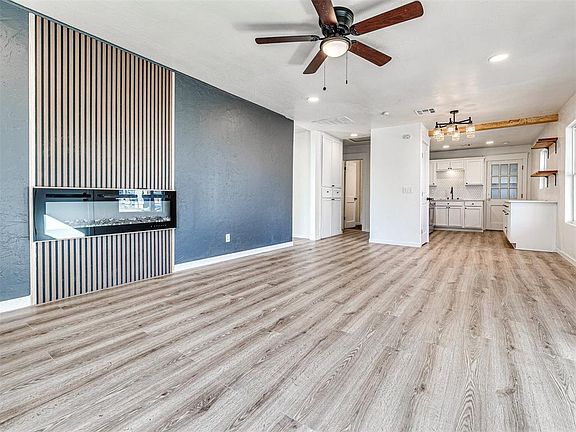 This recent, fully remodeled home is GORGEOUS AND MOVE-IN READY!! The layout of this home is spacious with nice-sized bedrooms. The kitchen offers all new stainless steel appliances, including a gas range, granite countertops, upgraded sink and large pantry. Both full bathrooms include nice vanities, tile and light fixtures. In addition to a detached one car garage/shop, the property includes a large in-ground storm shelter. Special features include a beautiful modern electric fireplace, new floors, new modern vanities and fixtures, recessed lighting and much more. The location is very convenient for access to TAFB, I-40 and Downtown OKC. You will want to see it sooner than later, so you don't miss out!