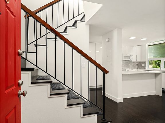 Enjoy stunning views of the Space Needle and Puget Sound from the living room of this end-unit condo in Queen Anne. Positioned away from street traffic and just blocks from Climate Pledge Arena, Seattle Center, dining, and shops, this location offers convenient access to some of Seattle’s best amenities. Quick access to Hwy 99 and I-5 makes commuting easy. Features include quartz counters, high-gloss cabinetry, Bosch appliances, wood floors, vaulted ceilings, recessed dimmable lighting, and multiple skylights, including one in the bathroom. Includes a dedicated garage space, carport, and plenty of storage.
