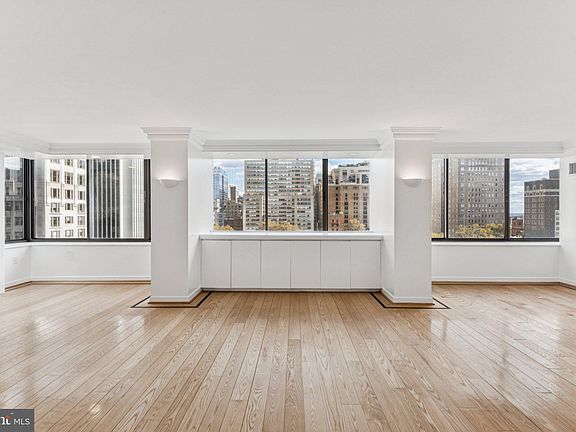 Custom designed home with spectacular Rittenhouse Square views and high-end finishes at the highly coveted Residences at The Rittenhouse Hotel. From the jaw-dropping sunrise views directly over Rittenhouse Square to the large open spaces, perfect for entertaining, this one-of-a-kind showplace is not to be missed. Upon entering the home, you are greeted by a welcoming foyer which conveniently branches out in all directions. Heading straight from the foyer towards the great room is a center gallery boasting architectural ceiling detail with accent lighting and a hidden wet bar with large Kedco wine refrigerator. The grand open great room is a love story to Rittenhouse Square. No matter where you are in the space, the wall of oversized windows provides a stunning view of the beautifully landscaped park. Additional features include custom built-ins, including under window storage and two display bookcases with more storage space; accent lighting; light hardwood floor with inlay; architectural details; and ample space for various living and dining layouts. There is also plenty of room to create a dedicated den/study. Adjacent to the great room is the high-end chef's kitchen with sleek flat panel white cabinetry; undercabinet lighting; granite countertops; double bowl stainless steel sink with garbage disposal, instant hot water faucet, and filtered water faucet; recessed lighting; and high-end appliance package including a double Thermador oven, five burner GE range with hood, Samsung dishwasher, Sub Zero fridge, and trash compactor. Between the kitchen and foyer is a custom, mirrored powder room and deep coat closet. On the other end of the great room is a spacious den/bedroom with two walls of windows overlooking The Square, two built-in Murphy beds, display shelving, a deep wall closet, and a hidden door leading to the primary suite. The luxurious primary suite includes a large bedroom with oversized windows overlooking The Square, two built-in bookcases, and hidden storage space. Attached to the bedroom is a massive dressing area with multiple custom built-ins, two walk-in closets, separate vanity with mini sink, and two marble-appointed bathrooms-- one with a jacuzzi tub and glass enclosed shower and the other with a large glass enclosed shower. Off of the dressing area is a hallway laundry room with white cabinetry, large sink, and side-by-side LG washer and dryer. Additional home highlights include Lutron lighting, automatic shades, beautiful millwork and molding throughout, plush carpet in the bedrooms, and hardwood floors throughout the foyer, great room, and kitchen. The condominiums at The Rittenhouse sit atop the five-diamond Rittenhouse Hotel. Residents of The Rittenhouse enjoy the use of a chauffeur-driven town car, concierge, and 24-hour lobby attendant. And for an additional fee they can enjoy the same amenities as hotel guests, including valet parking, housekeeping services, room service, spa and fitness center, indoor pool, dog walking, the newly renovated Paul Labrecque Salon, and Lacroix Restaurant.