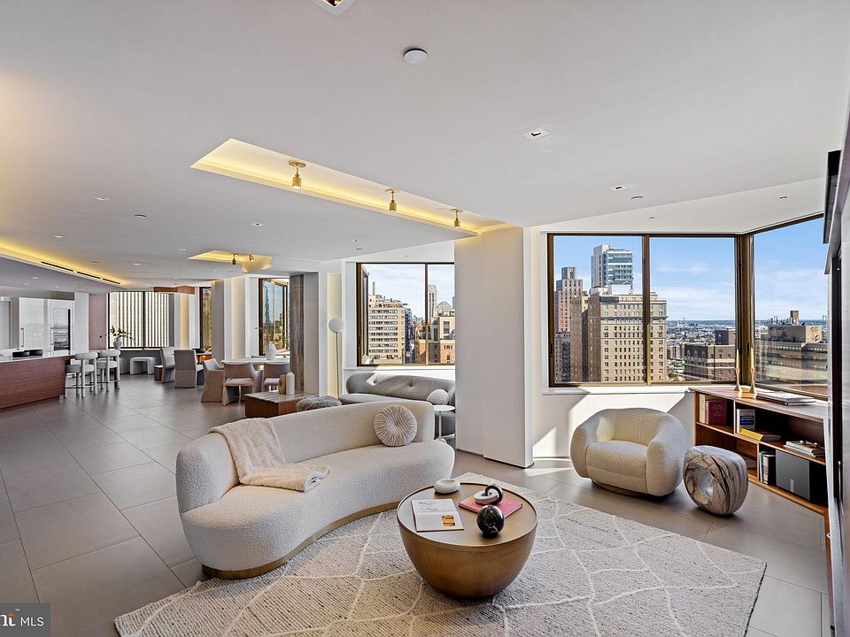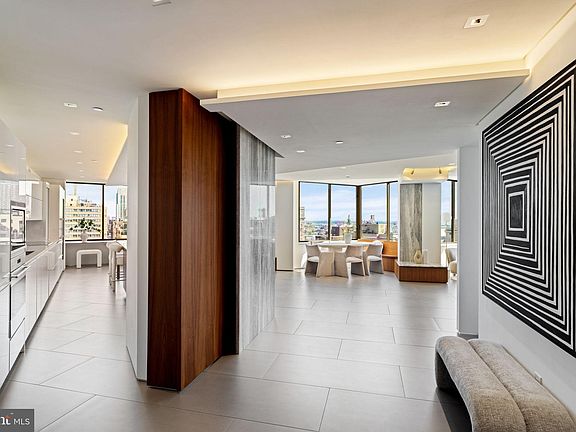 36 windows each overlooking Rittenhouse Square is where you will find this 3,500+ sq ft combined residence. A breathtaking and completely renovated masterpiece by dMas Architects, featuring the building’s iconic ziggurat architecture and 36 oversized windows capturing unobstructed park and skyline views. Every detail has been meticulously curated: hand-plastered walls, sapless walnut flooring, full size travertine and Calcutta Gold marble slabs, backlit quartzite accents, and custom millwork create a luminous, sophisticated sanctuary. The Poggenpohl kitchen is a chef’s dream, with Wolf appliances, Sub-Zero refrigerator and 175-bottle wine fridge, Silestone countertops, floating white lacquer and glass cabinetry, and an island with seating for 4. Walnut built-ins, bowtie-shaped wine storage, and bespoke lighting enhance both elegance and function. The primary suite offers a Sitting Room, dual Offices, dual California closets, complemented by TWO spa-inspired baths with soaking tub, dual Duravit vanities, and porcelain tile. The second bedroom features an en-suite Calcutta Gold marble bath with walk-in shower and floating vanity. Additional highlights include powder room for guests, multiple flexible spaces, extensive storage, custom electric shades throughout, and integrated audio/visual system. Residents enjoy five-star services and amenities: 24-hour concierge, doorman, valet, chauffeur-driven car, housekeeping, fitness center, spa, indoor pool, and on-site dining at Lacroix, Scarpetta, and Library Bar. This is Rittenhouse Square living at its absolute finest, combining timeless elegance, bespoke finishes, and unparalleled views in one of Philadelphia’s most coveted addresses.