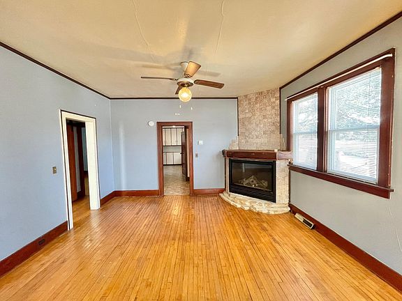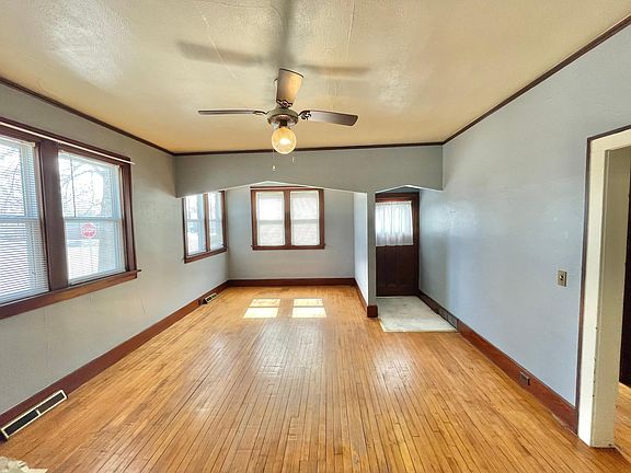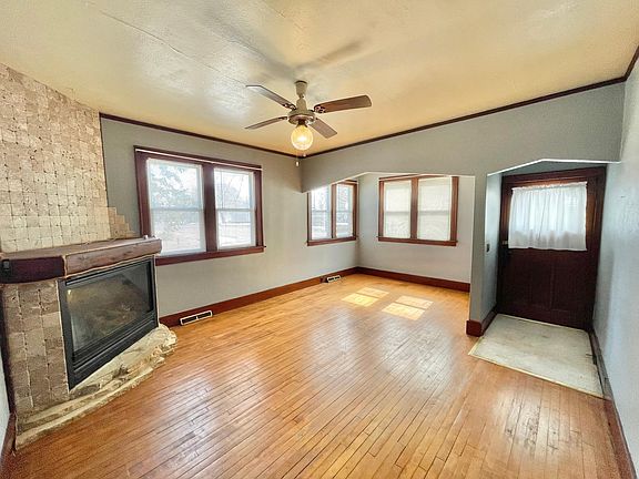 Situated on a corner lot, this 3-bedroom bungalow home has great character throughout with its traditional arched doorways, hardwood floors, a corner gas fireplace in the spacious living room. and a breakfast nook in the kitchen. The side door leads out to a covered patio area. The 40' x 40' garage is insulated and heated and in addition to providing ample storage space, has endless possibilities with a 3/4 bath, a finished loft area, multiple ground level rooms, and a patio door.