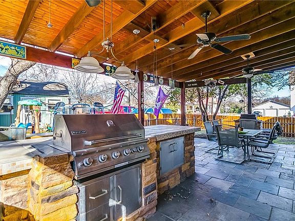 Adorable Historic Home on Corner Lot! 5 BR, 2 Bath! Home Features include Arched Front Door, Hardwood Floors, Crown Molding, Decorative Lighting & Curved Archways! Family Room has Gas Fireplace & Built-ins Galore! Kitchen has granite c-tops, Farmhouse Sink & SS Appliances...Viking Gas Range, 2 Drawer Dishwasher & Wine Fridge & is open to Breakfast Nook with Large Butler's Pantry with Storage Galore! Spacious Downstairs Full Bath has Clawfoot Tub! Upstairs Full Bath has Large Vanity with Granite C-tops & Tiled Tub Shower Combo! Large 2nd Living could be Game Room! Huge Covered Back Patio has Built-ins ready for your TV, Outdoor Kitchen & Slate Tile Flooring! Work shed with Electric and matching storage shed for tools and gardening equipment!
