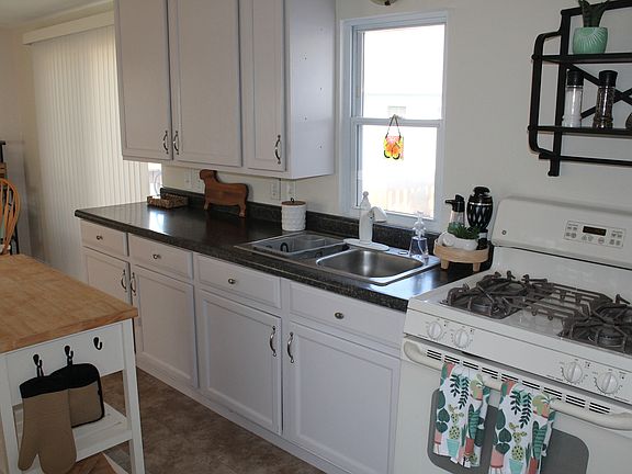 Check out this very clean (move in ready) one-bedroom / one-bath park model with large room addition (could serve as a second bedroom). This property has been well maintained and it shows the minute you walk in the door. Park model has natural gas to home. Large eat-in kitchen with plenty of storage (pantry), laminate floors, washer/dryer also portable island & table w/chairs staying. Nice newer window treatments stay. Deck (front & back). Shed on concrete w/electric for storage. Large lot that backs up to nature adds lots of privacy and room to spread out. This is a must see for either weekends or to live year-round!