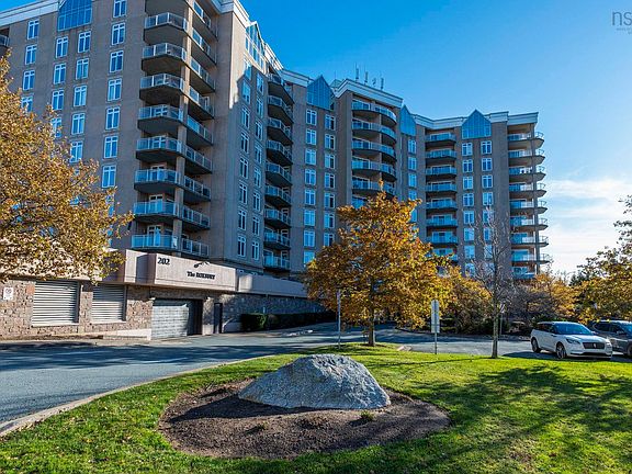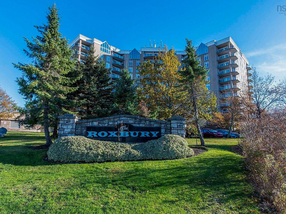 Carefree, convenient condo living at the beautiful Roxbury in Halifax. This gorgeous 2 bed, 2 bath corner unit condo is light-filled with a wrap-around deck to enjoy beautiful sunsets, views of Hail Pond and offering inviting spaces with 9 foot ceilings where you'll love both relaxing and entertaining guests. Wonderfully laid out with a generous, private entry leading to your spacious kitchen with breakfast bar and an open concept living and dining area. Notice the ductless heat pump offering air conditioning on those hot summer days. Bedrooms are nicely set on opposite sides of the condo and you're sure to love the spacious primary bedroom with walk-in closet and spa-like ensuite with double sinks, jetted soaker tub and walk-in shower. This elegant building is well-maintained and boasts lots of amenities including a large gym, 2 guest suites you can rent out if company is coming, a common room, workshop, underground parking, storage and a live-in super. Excellent location next to the walking trails around Hail Pond and across the road from beautiful Long Lake trails, minutes to Highway 102, close to Bayer's Lake and only 12 mins to downtown and Dalhousie University, 30 mins bike ride or a 45 mins by transit. This beautiful residential neighbourhood is a wonderful place to live. Quick closing possible and some furnishings can be negotiated with the sale. Book your showing today.