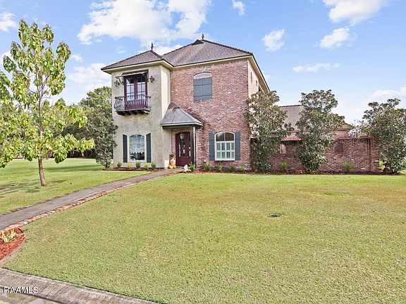 Preferred lender is offering up to $5,000 lender credit with acceptable offer. Here is a very rare opportunity to be a resident of the highly sought-after Acadia Oaks Estates subdivision! This custom, one-owner home was built with top-quality features, including commercial grade appliances, 200-year-old longleaf pine wood floors, copper apron front sink, and custom granite and cabinetry. Downstairs, the formal dining room and designated office provide plenty of space no matter your needs. Upstairs, the spacious primary suite features an impressive walk-in closet with inlay details, luxurious bath finishes, and convenient laundry access. Each bedroom has an ensuite, while a bonus seating area with a balcony overlooks a serene courtyard. Outdoor amenities include a sparkling gunite pool with waterfall and slide, a large covered patio with a custom-built fireplace and pizza oven, and a large backyard. Additional highlights include a pool house with full kitchen and loft, and a workshop with 12-ft garage door--ideal for an RV or boat--equipped with a gas range, sink, and heated space to protect against freezes. With solar panels for energy efficiency, a whole home generator and flood-zone X status, this home is as practical as it is beautiful.