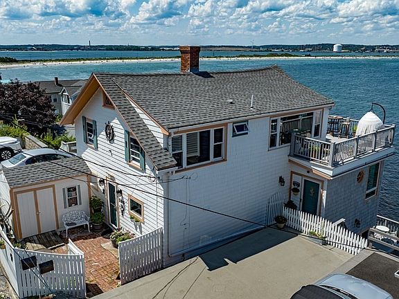 SPECTACULAR WATERFRONT offering in quaint Nahant! TRULY INCREDIBLE OCEANVIEWS from nearly every room-you'll feel like you are literally living on the water! This special property even includes a most unique in-law apartment/au pair/home office you'll ever see-heavily embellished w/woodwork from an antique ship! The main residence offers open concept dining & living w/an entire wall of windows overlooking the Atlantic! Wood burning fireplace adorns the living area for those cozy winter nights. Kitchen has been updated to include lots of cabinetry, a center island, granite counters, gas cooking & a huge walk-in pantry/laundry room-plus access to the cute fenced in brick patio (w/shed). This level also features a 1/2 bath. You'll fall in love w/the main bedroom & it's expansive windows w/access to a huge private wraparound deck! Two additional bedrooms & updated full bath finish it off. Flex space in walkout level to the huge deck & stairs to yard. Sunset & Sunrise views PLUS a Dog Beach!