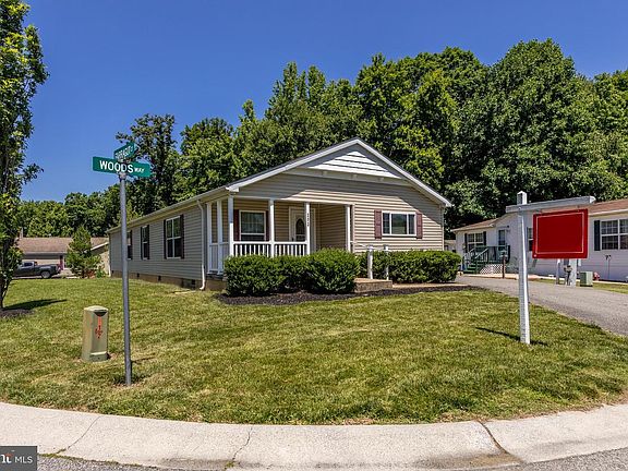Wonderful opportunity to live in the beautifully designed 55+ community of Cecil Woods. This Kingscote model was manufactured in 2010 and offers a 1 car garage and has many upgrades throughout. Truly expansive kitchen with huge island, cabinets with crown molding detail and glass inserts, black appliances, recessed light package, and an oversized window in front of sink. Spacious family and dining rooms located off of kitchen. Primary bedroom has huge walk-in closet, ensuite bath with double vanity, walk in shower, and builtin linen cabinet. Laundry mud room combo with sink. Additional features include vaulted ceilings, new plumbing in March 2022, sump pump underneath, 6 month old microwave, raised toilets, grab bars in baths, maintenance free vinyl siding and trim, shake style exterior accent. This home backs to woods and overlooks the pond- perfect for someone who loves nature and desires a serene setting. Located in Elkton and mins to North East. Buyer(s) must be approved by Park Management. See Disclosures.