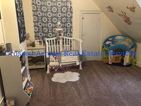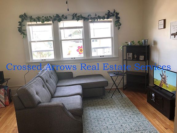 This upstairs two bedroom one bath apartment has hardwood floors in the living room and bedroom. One bedroom has carpet.