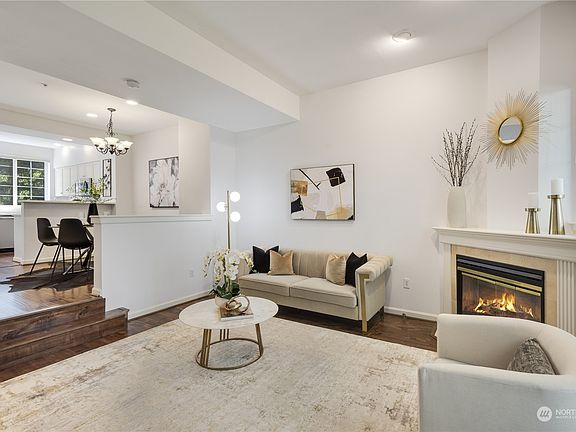 Light filled spacious condo in prime Bellevue location. 2 ensuite bedrooms 2.5 bath, vaulted ceilings, Skylights. Open plan kitchen, dining and great room. Large utility room. Cozy gas fireplace. Back patio backs up to open space. 2 spacious bedrooms both with attached bathrooms, vaulted ceilings and walk in closet. Kitchen looks out on to green space. Patio space perfect for grilling and summer gatherings. Attached 2 car garage with lots of storage. Central location. Minutes to downtown Bellevue, major tech employers and freeways. Bellevue school district. Well maintained and managed community with strong reserves. No rental cap. Clean, move in ready.
