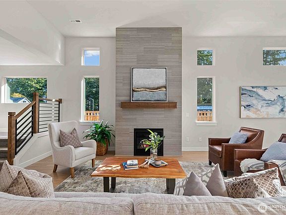 Acorn Park by Pacific Lifestyle presents the Mollala MODEL HOME FOR SALE! Secure this home in a nearly completed community, Just 5 minutes from JBLM. Space & luxury is unparalleled. Corner home site, covered patio w/ outdoor fireplace, level pristine corner lot- fully landscaped, irrigated and oversized THREE Car garage. Community is quiet & established w/ mature trees & spacious estate style homes. Desirable Main level primary bed & en suite, plus additional full bed/ bath on main Lives like a SINGLE STORY home. Holiday Gourmet Kitchen with large gas range, double ovens, designer features. Wall of Windows and Vaulted ceilings are incredible. Open Concept Great room and dining. This home lives beautifully. Upper lever bonus, bed & bath.