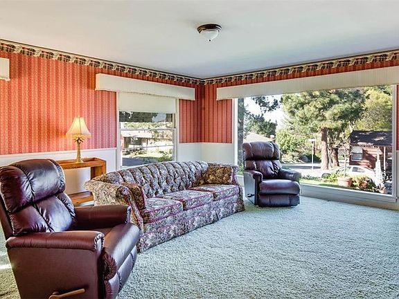 Seller wants to see offers! Perched high above the street sits this one of a kind Ranch style home, beautifully situated on an oversized 15,299 square foot double lot. Lovingly maintained the home features approximately 2,593 square feet of living space, Three generous bedrooms including master bedroom and another with wood burning fireplace and wet-bar which was previously used as a great room, 1.5 baths, inviting living room with wood burning fireplace and tree top views highlighted by sparkling city lights and mountain views, large family room and country kitchen with breakfast nook. This friendly home is features large windows enticing guests to venture outside to the covered brick patio and meander through the enchanting gardens that surround the home. Lush landscaping includes mature Citrus, Chinese Elm, California Pepper and Olive Trees accentuated by flowering Camellias, Narcissus bulbs and a variety of beautiful plants. A 2 car oversized detached garage and ample parking make this a rare and special property. Home is situated on 2 lots #15 and #16.