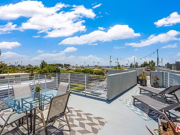 Panoramic 360 Ocean, Mountain & City Views. This sun-drenched, architecturally inspired two bedroom, 3 bath, plus a spacious loft (easily a third bedroom) features soaring 16-foot ceilings & walls of windows that flood the home with tons of natural light, along with three private outdoor spaces, including two rooftop decks with direct ocean views. The open living area showcases white oak floors, motorized shades, & a chef's kitchen, with high-end appliances (Thermador, Fisher-Paykel), quartz countertops & custom cabinetry, creating a dramatic centerpiece for entertaining & everyday living. The loft overlooks the main space, capturing breathtaking views and dramatic sunsets, with a full bath on the main level, functioning seamlessly as a third bedroom. Both bedrooms include their own en-suites, & the primary bedroom enjoys a private outdoor patio. All bathrooms are thoughtfully appointed with quartz counters & a custom vanity. Located in an intimate four-unit building with great neighbors, the home includes side-by-side parking in a secure underground garage, an additional storage unit, security cameras, smart thermostats, & HOA dues that include earthquake insurance, building insurance, water, sewer, trash & gardening. Just six blocks from the beach & vibrant Main Street & only two blocks from the dog park in this pet-friendly building. This rare offering combines modern luxury, security, & unbeatable coastal living, with furnishings available for a turnkey experience.