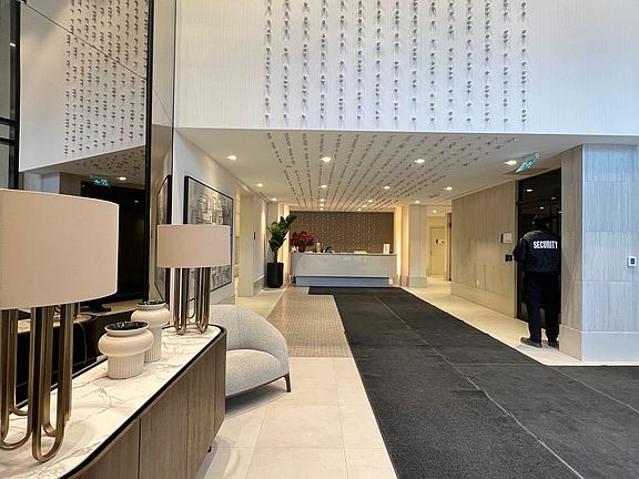 Tall ceilingsFloor-to-ceiling windowsStainless steel appliancesBuilt-in microwave