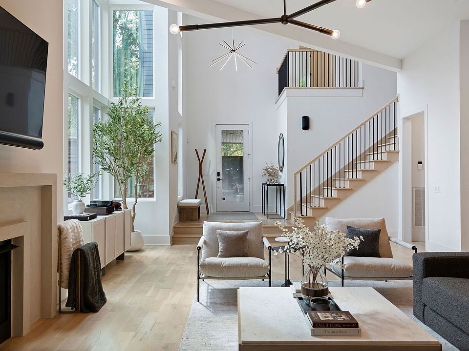 Fully equipped home gymGreat roomImpeccable tasteArchitectural dramaClean linesWarm livable luxuryLight-filled spaces