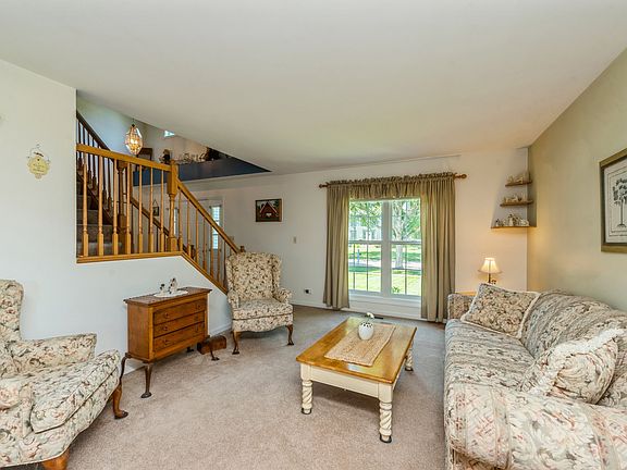 Beautiful Wadsworth Model in the Willoughby Farms neighborhood! This one will go fast. Upgrades include a newer architectural shingle roof, newer siding and windows were just recently replaced! This home has 2 staircases, newer "Slated Gray" custom kitchen appliances, kitchen is combined with a 2 story family room with fireplace and hardwood floor! Beautiful landscaping with a large back yard. semi finished basement, 4 bedrooms master suite with whirlpool tub and separate shower& walk in closet! 2 and 1/2 baths formal dining room with living room make this a very comfortable home with plenty of flex space! window valances are not included. Take a look, you will not be disappointed!