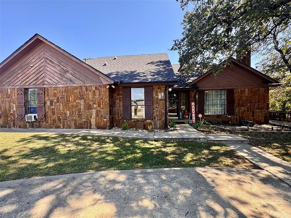 This beautiful, one-of-a-kind stone home offers 4 bedrooms, 2 bathrooms, and sits on just under 1 ACRE m/l but feels like more with the wooded scenery. Conveniently located in town near shopping. The home is designed to maximize backyard views with a large deck overlooking the in ground pool and spacious yard. Inside, the vaulted-ceiling living room features a dramatic stone gas fireplace, built-in shelving, and a wall of windows. Sliding glass doors connect seamlessly to the deck, perfect for entertaining. The kitchen boasts custom tile countertops, a breakfast bar, and abundant cabinetry, opening into an oversized dining area with panoramic views of the backyard. The owner’s suite has been recently remodeled with barn door details, and a luxurious bathroom complete with a soaker tub, custom double-sink vanity, separate shower, and a large walk-in closet. A bonus area within the suite provides flexible space for a home office, sitting room, or nursery. Three additional bedrooms are generously sized with large closets, and the second bathroom offers an oversized vanity with built-in storage. From the stonework charm to the expansive outdoor living, this home is full of character and functionality. Ready for both relaxation and entertaining.