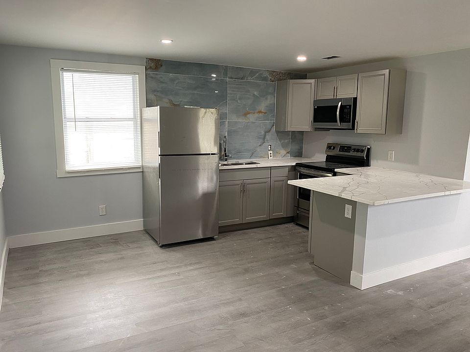 Newly renovated 1/2 duplex 1 bedroom, 1 bathroom apartment. New floors, paint, bathroom, ktichen. Washer and Dryer included. Landlord pays water/garbage, tenant pays electric. Security deposit, $500. First and last month's rent due upon move in.