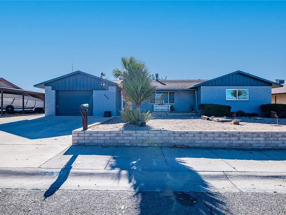 UPDATED PARKSIDE 4/2/2 W/ CHARACTER: Welcome to the centrally located subdivision of Golden Gate Addition. This established neighborhood is adjacent to grocery stores & shopping, and is just south of the interstate from Kingman Regional Medical Center. Comfortably nestled across from Firefighter's Memorial Park and Kingman Middle School, this .19 acre lot houses an updated 1980 block construction home with 1,376 sf, 4 bedrooms, 2 bathrooms, and 2 separate one car garages. Inside, charming character is created through unique features. The entrance opens directly into the open concept living and dining areas. The large living room is accented by a natural pine wood plank wall. The casual dining and kitchen are at the back of the home, and host new luxury vinyl flooring, a stainless steel fridge & microwave, updated sink & faucet, tile brick backsplash, custom patterned kitchen cabinets, a pantry, and access to the attached sun room. To the west side of the home, the master bedroom is complete with its own fully renovated ensuite, including a new shower, tile floor, vanity, light fixtures, and medicine cabinet. A neutral faux rock accent wall and cedar planking in the closet complete the master space. Also fully renovated, the guest bathroom adds to the home's modern feel. The main living areas are kept comfortable with a new electric HVAC unit. At the back of the house, an expansive sunroom is floored with vinyl planking, and pine planking adorns the walls (new 2023 roof). Segueing from the sunroom, the fourth bedroom rests at the southwest corner of the dwelling. The room enjoys its own mini split unit, private yard access, and direct access to the secondary garage, making it an optimal space for guests, a workshop, or a craft room. Outside, the oversized backyard presents a canvas for creativity. Ample space exists for fire pits, pools, gardens, or gazebos. A 12' RV gate provides easy ingress/egress through the alley into the backyard for garage use or additional side yard parking. Out front, easy care desert landscaping promotes curb appeal, and opens to a north facing view of the park. Imagine looking at a lush lawn from your living room window that you never need to manicure. Additional features include: ceiling fans, recessed lighting, covered patio, storage shed, and mature trees. Call your Realtor today for your private showing.