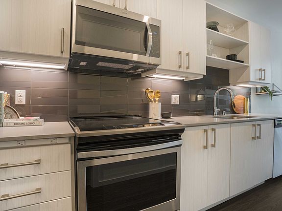 - Exterior features: Business Center, Electric car charging stations, Flexible Rent Payment Schedule with Flex Rent, Flooring: Concrete, Modern cabinetry with under-mount lighting, Package Receiving, Stainless steel appliances, Stunning subway tile backsplash, USB charging ports, Wood-style plank flooring