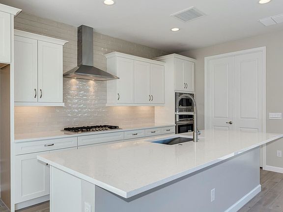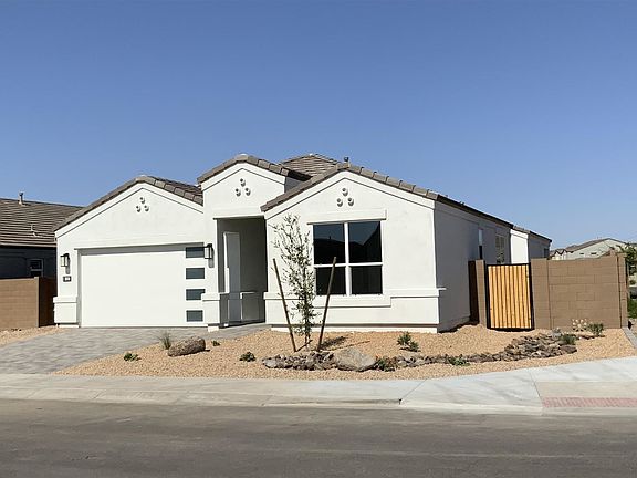 Welcome home to this beautiful DR Horton Smart Home! This ''Jordan'' floor plan features an open concept kitchen, dining and living room, 3 bedrooms and 2 baths. Designer interior finishes include white cabinets, quartz countertops, wood-look tile, gourmet kitchen, and corner panel door that opens up to courtyard. Gorgeous master bath with dual sinks and large walk-in shower. You'll love the convenience of the walk through the master closet into the laundry room and the organizational nook as you come in from the garage. Smart home features included, paver driveway, and much more! Beautiful professionally landscaped backyard, fountain in the courtyard, outdoor gas hookup for grill and mountain views. Not pictured: Fridge, Washer and Dryer included.