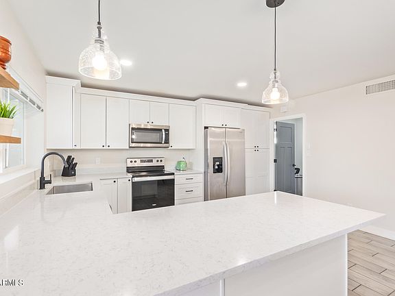 Your Beautifully Updated Knoell Tempe Home Is Here! This 3 bedroom, 2 bathroom brick style home boasts a large living room and separate dining room with wood-look tile throughout. Kitchen features quartz countertops and sleek shaker style cabinetry. Main and primary bathrooms are tastefully upgraded and home features updated light fixtures, craftsman style doors, and modern black finishes throughout. Large pantry and extra storage in the indoor laundry room and off of carport. Spacious low maintenance gravel backyard includes pavers, a custom horseshoe pit and an RV gate all in a non HOA community. Close proximity to ASU Campus, PHX Sky Harbor and the 101 and 60.