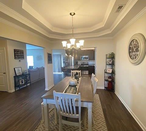 Well THIS 2020 won't disappoint you! Open concept that includes a large great room- kitchen-formal dining room & a flex/office/den space as well! Wood look LVT is a dream to manage and the kitchen has beautiful granite with the sought after island with breakfast bar! Add a roomy laundry space with a half bath downstairs for guests and you will only be more impressed by the oversized owners suite and the walk in closet. Then it even gives you 3 more graciously sized bedrooms with their own shared bath that has double sinks. This lovely 2019 home is ready for you! No flood zone either!!