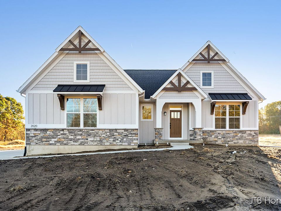 Welcome to this charming cottage-style ranch, where thoughtful design meets everyday comfort. The main level features 2 bedrooms and 2 full baths, including a private primary suite with a spacious walk-in closet, dual vanity, and separate water closet. The open-concept living area flows from a welcoming foyer into a bright great room, dining space, and a stylish kitchen with a curved island and snack ledge. A convenient mudroom and main-floor laundry add ease to your routine. Downstairs, enjoy a finished rec room, third bedroom, full bath, and ample storage. This is the Whitby floor plan by JTB Homes. Buyer(s) eligible for rate lock being offered by seller. See documents for more details.