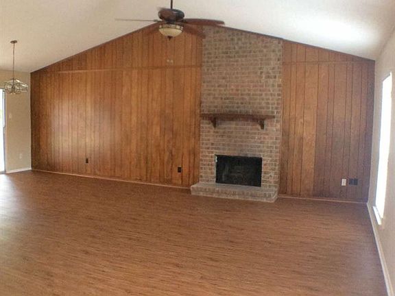 3 bedroom, 2 bathroom brick house located in established neighborhood with fresh paint and new wood flooring throughout home with a large sized yard. Updated light fixtures and new ceiling fans throughout. This house has a fireplace, large bedroom closets, washer dryer hook-ups, covered deck with a 2 car garage. A Must See property!