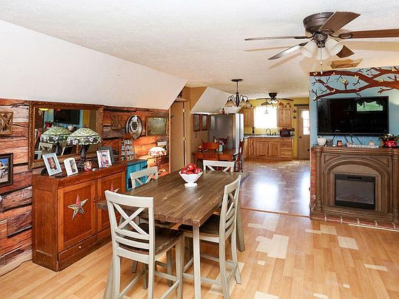 This cozy A-frame style home offers a peaceful setting on a level 1 acre lot with detached garage. Home features an open concept design with 4 bedrooms (5th non-conforming) and 2 bathrooms. The large deck out back is partially covered and perfect for entertaining.