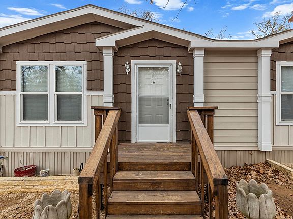 Welcome to 2020 Indian Gap in the sought-after Holiday Villages on Lake Fork, a gated, amenity-rich community designed for relaxed lake living. This beautifully maintained 2016 manufactured home offers 3 bedrooms and 2 bathrooms, showcasing a meticulously clean interior and an inviting open-concept layout that blends the kitchen, dining, and living areas. The kitchen features a large countertop island, a new high-end oven, and a pantry accented by a stylish barn door for an updated, modern aesthetic. The split primary bedroom provides added privacy and opens into a stunning master bathroom complete with a large tiled walk-in shower, an oval freestanding soaking tub, a generous countertop with double sinks, and plenty of cabinet space for storage and organization. Out back, a spacious porch overlooks the waterfront, offering peaceful views and a short walk down the steps to the shoreline of Lake Fork. Beside the porch, a cozy fire pit and seating area create the perfect spot to unwind or entertain under the East Texas sky. The property also includes a 1-car carport with additional storage. Holiday Villages on Fork offers gated security, a community boat ramp and fishing pier, a clubhouse and pool, RV hookups, parks, picnic areas, and regular community events that give the neighborhood a welcoming, close-knit feel. Priced at $236,975, this charming lakeside retreat offers comfort, convenience, and the serene beauty of Lake Fork—ideal as a getaway or a full-time residence.