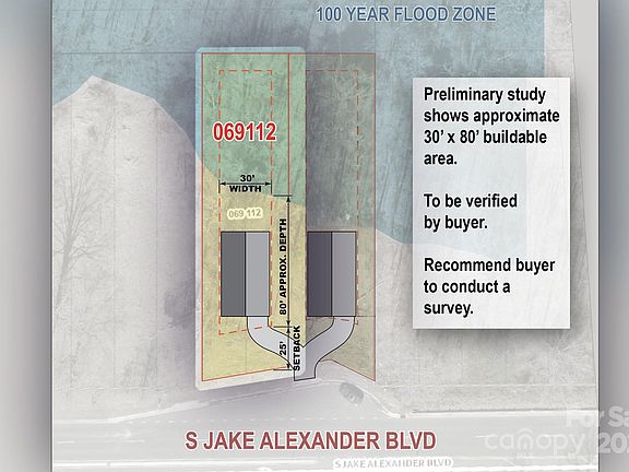Build your next home or investment property on this beautiful 0.21-acre lot located on South Jake Alexander Blvd in Salisbury! The initial slope from the street provides a great privacy shield down to the more level and buildable area beyond. there’s plenty of room for a custom home, yard space, or outdoor living area. City water and sewer are available - water requires extension from city. Conveniently located just minutes from Rowan-Cabarrus Community College, I-85 and downtown Salisbury with local shops and restaurants. Great builders opportunity. Neighboring lot also available. Buyer to confirm all setbacks, utilities, and regulations with governing municipalities. Preliminary study shows an approximate buildable area of 30' x 80' (based on setbacks & flood zone map). All details to be verified by buyer / recommend a survey be conducted by buyer. Neighboring property has been cleared/cleaned of debris, old vehicles and distressed residence.