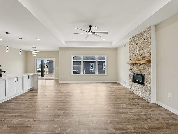 BRAND NEW RANCH HOME JUST COMPLETED w/3 Bedrooms (Option for a Future 4th & 5th Bedroom), 2.5 Baths, 1st Floor Laundry + Large 2.5 Car Attached Garage! Enjoy the Open Floor Plan that Features a Great Room w/a 10' Trey Ceiling + Modern Electric fireplace! STUNNING Kitchen w/Walk-In Pantry, Work Island, Quartz Counter Top, Stainless Steel Appliances & Large Dining Area! Primary Suite with a Gorgeous Tiled Walk-in Shower & Huge Walk-in Closet. Split Bedroom Design for Your Privacy! Large L/L ready to be finished w/Family Room, 4th & 5th Bedroom. Enjoy the Summer & Fall Evenings on Your Covered Back Patio!