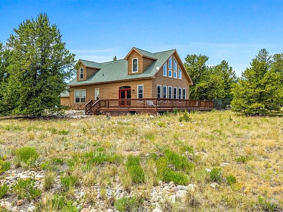 Tucked inside the private, gated community of Warm Springs Ranch, this 1.2-acre property offers the perfect balance of wooded privacy and open space to capture breathtaking 180-degree mountain views, including the iconic Pikes Peak. Backing directly to BLM land, this home provides both a serene retreat and endless outdoor adventure right at your doorstep. This 3-bedroom, 3-bath, 2,036 sq ft home has been thoughtfully updated with a new roof, Anderson windows, and new exterior doors, including welcoming French doors that open to a wraparound deck—ideal for soaking in sunrise and sunset views. Inside, warm hardwood floors flow through the living spaces, complemented by custom handcrafted hickory cabinets and stainless steel appliances in the kitchen. Each of the three bathrooms has been tastefully remodeled with custom vanities and new flooring, adding to the home’s comfortable, move-in-ready appeal. The main-level primary suite features a walk-in closet and en-suite bath, while the upstairs boasts a large, private guest suite with its own bath and walk-in closet. Additional amenities include a tankless hot water system, natural gas, Lennox forced-air heating, and an attached 2-car garage. A spacious outdoor shed offers even more storage for gear and tools. As part of Warm Springs Ranch HOA, residents enjoy exclusive access to stocked private fishing ponds, a community clubhouse, tennis and pickleball courts, hiking trails, and year-round gated security—all while being just a short drive to Fairplay and only 35 minutes to Breckenridge skiing and dining. If you’ve been searching for a mountain home that blends privacy, comfort, and community amenities, this Warm Springs Ranch gem delivers it all.