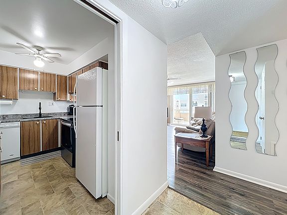 The kitchen is move-in ready with a brand-new countertop, new range, and all the essentialsfrom cookware to coffee maker. The inviting living area includes a leather sofa, reclining chairs, dining set, and sliding doors that open to your private balcony for ocean breezes and sunrises.