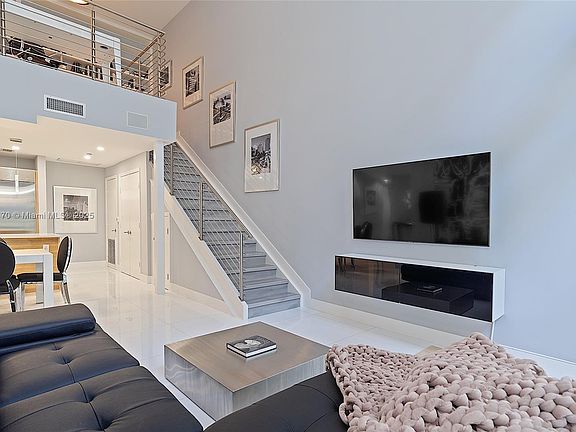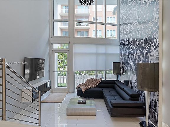 A must see: furnished townhouse designed by Steven G. Perfect blend of autonomous living in comfortable luxury at Paramount Bay, one of the most desired buildings in Edgewater. Storage space built-in below staircase, recessed ceiling lights, electric blinds downstairs and recently installed wood laminate on stairs. Entrance is from 20th Ter, two-story, 20+ foot living room ceilings. Guest bedroom & private bathroom, master bedroom upstairs with loft balcony, huge den area (set up for office space), spacious walk-in closet. Subzero & Wolf appliances, wine chiller, full size washer & dryer. Unit has a covered parking space. Amenities @ Paramount Bay include 2 pools, gym, spa, movie theater, valet, cabanas, bonfire area and more. Wi-fi & cable included.