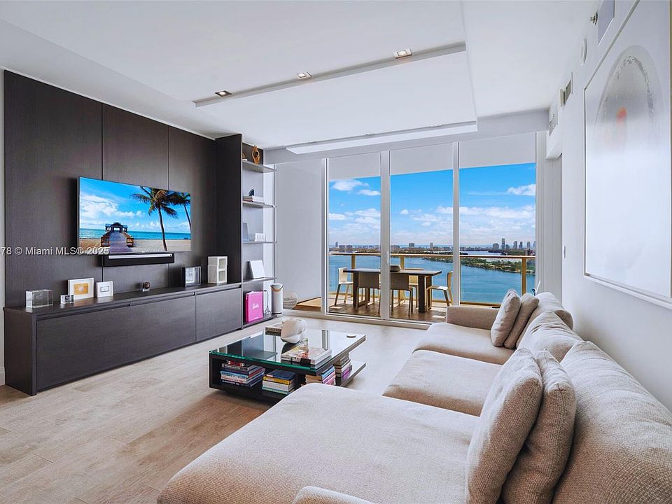 Enjoy direct bayfront & dramatic city views from this sophisticated, flow-thru 2-bdrm/2.5-bath + den home that blends elegance, function & artful design. Spanning nearly 1,700 SF, the beautifully appointed interiors feature Porcelanosa wood floors, custom European doors, Italian cabinetry & Wolf/Sub-Zero appliances. The spacious den offers versatility; large walk-in closets & full laundry rm provide ample storage; integrated Savant/Sonos smart technology ensures modern convenience. Paramount Bay by Arquitectonica w/ interiors by Lenny Kravitz, is celebrated for resort-style amenities, including sunrise & sunset pools, spa & fitness center, club lounge, theater & 24/7 concierge. Edgewater’s premier bayfront address offers effortless access to Midtown, Wynwood, Design District & Miami Beach.
