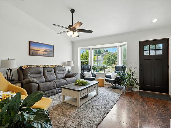 Beautiful tri level home in the Riverwalk neighborhood! Mature landscaping and a water feature greets you to this move in ready 3 bedroom, 2 bathroom home. The home is light and bright with vaulted ceilings in the living room and kitchen. The kitchen has stainless steel appliances with French doors that lead to a fantastic patio and a backyard oasis with a water feature and room for a firepit. Perfect for entertaining. Upstairs you'll find the Primary bedroom with double closets. The primary bedroom adjoins to the main bathroom with double sinks. There is another large bedroom upstairs. Downstairs you will find another family room and bedroom, bathroom, as well as the laundry room with sink. Double car garage, as well room for RV parking. Gas forced air heat and A/C. Just blocks from 2 parks, and the Centennial Trail. Home is within the Riverbend Elem, Selkirk Middle school, and Ridgeline High School school districts.