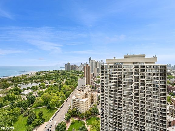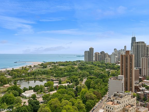 Nothing to do except - MOVE IN ... Rarely available, high floor spacious studio with panoramic views of the lake, park and city ... Upgraded, tastefully finished, and one of a kind design. Have your cup of joe from your private balcony and take-in the beautiful sunrises and sunsets from this great vantage point. Grill out as you watch the annual Air & Water show ... It's private, cozy and feels like a home. Floor-to-ceiling windows flood the entire space with natural light ... Well thought out design and beautifully upgraded and renovated with new wide plank flooring. Kitchen features white shaker cabinetry, granite counters, stainless steel appliances and custom mosaic tile backsplash. Includes large custom murphy bed with flat screen TV attached. Bathroom is upgraded, clean with contemporary finishes and includes a walk-in shower. Abundant closet space and thoughtful design make this home as functional as it is beautiful. The amenities include: 24/7 door staff, World class fitness center, yoga studio, pool, sauna, whirlpool, basketball, tennis, bocce ball, golf, putting green and outdoor gas fire pits .... Located in the heart of Lincoln Park, steps away from North Ave beach, Lincoln Park Zoo, walking, jogging, and cycling trails, Farmers Green Market, Boutique restaurants, shopping, world class dining and transportation. Investor friendly, low taxes, low assessments, Cats OK, no dogs.