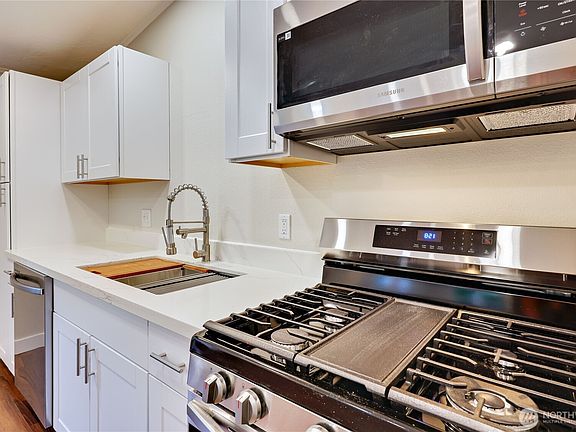 Elegant quartz countertopsUpdated kitchenTankless water heaterPropane furnaceNew vinyl plank flooringNew decksOpen airy floor plan