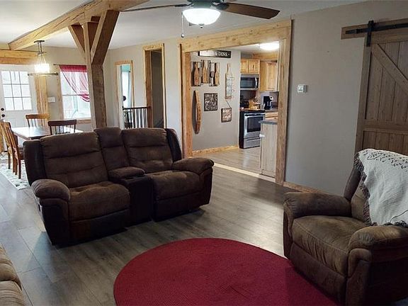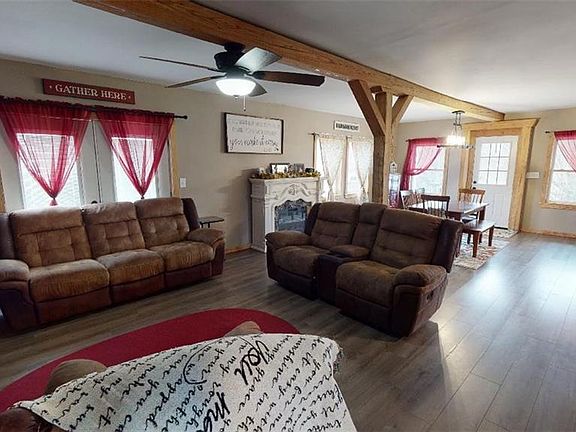 BRAND NEW EVERYTHING AND MINERAL RIGHTS! This 3 bedroom 1 1/2 bath farmhouse was completely gutted and updated in 2018. Brand new metal roof, new well, whole house water filtration system, brand new wiring throughout house, new furnace and duct work, spray foam insulation on all exterior walls, brand new flooring and drywall throughout, new kitchen cabinets and appliances, brand new windows throughout house, freestanding tub and walk-in tiled shower. Open concept for first floor living room, dining room, and kitchen. Farmhouse style tub and extra large walk in shower for downstairs bathroom. 1st floor master bedroom is exceptionally large while 2 more bedrooms are upstairs along with a newly added half bathroom. Newly added large side deck for great entertaining!